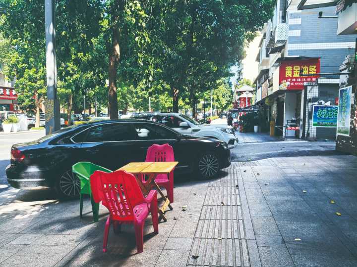 摩托车、菜摊占道 视障人士出行步步惊心