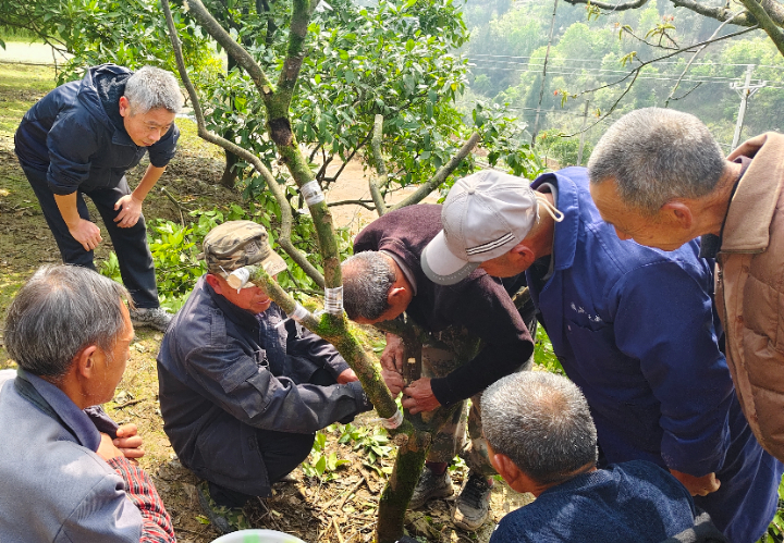 近日,保合镇马家场村的梨橙园内,一场梨橙管护现场教学如期开展,果农们围聚田间,聆听农技专家讲解管护技巧,把地头变成“实景课堂”。教学现场,来自秀山县的资深柑橘种植专家白天富、周道亮现场“把脉问诊”,针
